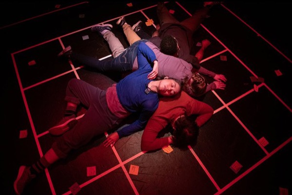 Performers repeat text verbatim as they listen to remixed audio tracks of fifty-five interviewees all responding to a single prompt: “Describe a time you were acutely aware of your race.”